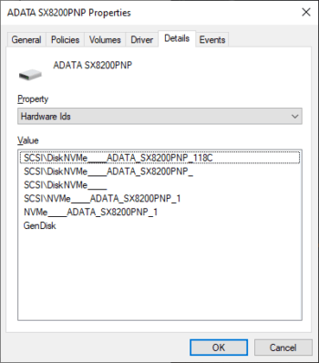 - vienāds Hardware ID dažādu kapacitāšu diskiem