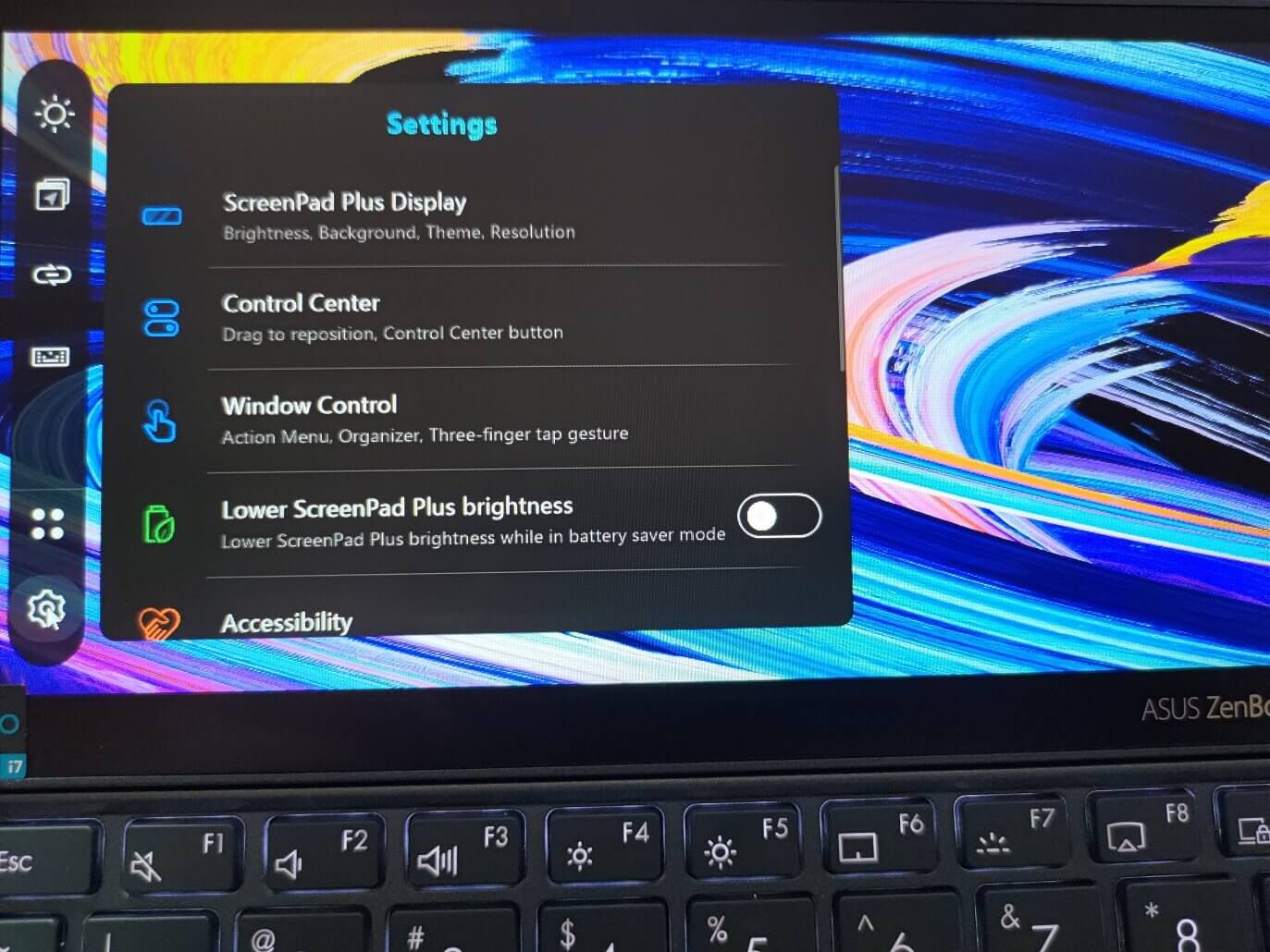 Papildus displejam nav nekādu būtisku izmaiņu, tas joprojām ir 12.65 collu liels, nodrošina 1920 x 515 izšķirtspēju, 60Hz atsvaidzes intensitāti un tam ir IPS panelis. Arī šis displejs ir izmantojams kā skārienekrāns. Uz papildus displeja varēsiet izmantot papildus programmas, kas var atvieglot dažādu uzdevumu veikšanu. Papildus displejam iespējams iestatīt fona attēlu, mainīt tā spilgtumu un citus uzstādījumus. Šo displeju var izmantot arī kā ciparnīcas tastatūru. Kopumā šim papildus displejam var atrast daudz un dažādus pielietojumus. Tas gan vairāk būs atkarīgs no tā, kam ikdienā šo klēpjdatoru izmantotu.