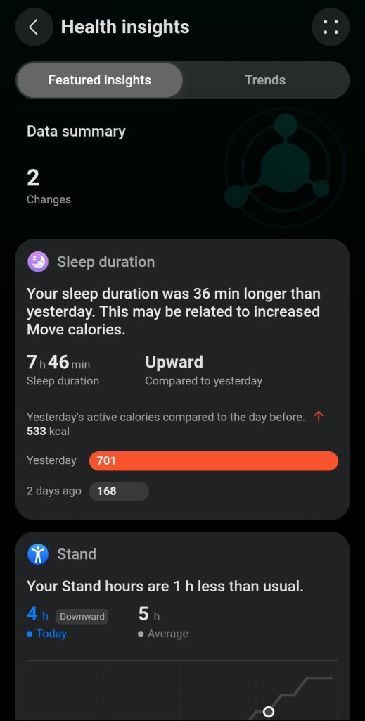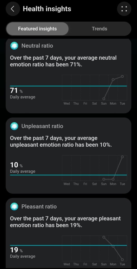 Health Insights jeb veselības ieskata sadaļa apkopo reģistrēto informāciju par emocijām, miegu, sirdsdarbību un fiziskajām aktivitātēm, ļaujot lietotājam labāk saprast, kā stress vai aktivitāšu trūkums ietekmē veselību. Ilgtermiņa dati var palīdzēt identificēt pamanīt potenciālas veselības problēmas un mudināt piekopt veselīgāku dzīvesveidu.
