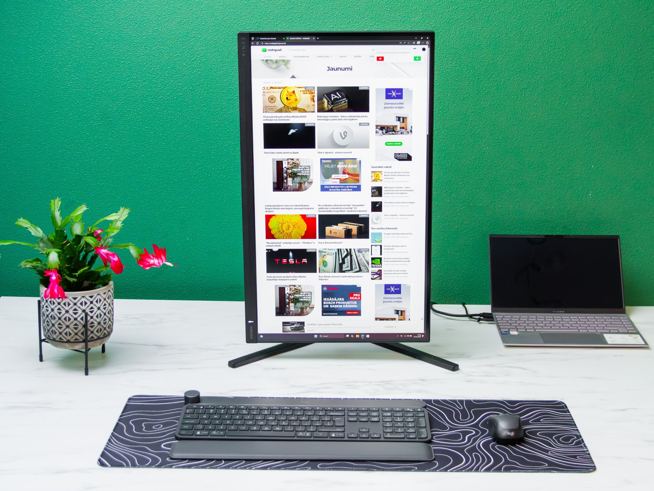 Ikdienā Evnia 27M2N3800A ir ļoti ērts monitors. Teksts 4K režīmā izskatās ass, un augstā pikseļu blīvuma dēļ acis nenogurst tik ātri. Produktivitātes darbi – programmēšana, tekstu rakstīšana, foto rediģēšana – šeit jūtas kā mājās.