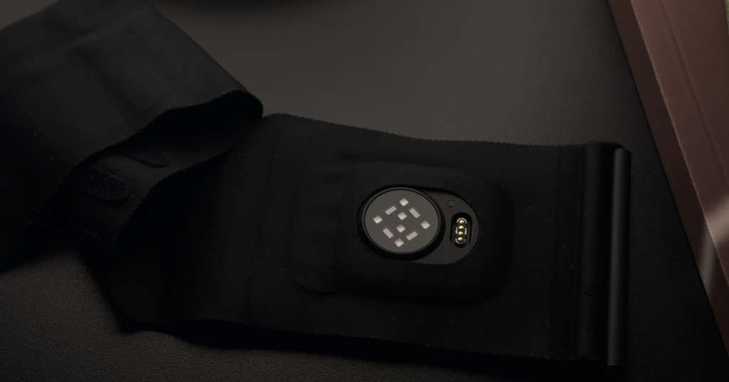 Garmin viedās miega aproces dizains ir vienkāršs un pat gaumīgs. Aproci veido divi komponenti – siksna, ko aptin ap augšdelmu, un korpusa, kas veic miega uzraudzīšanu.
