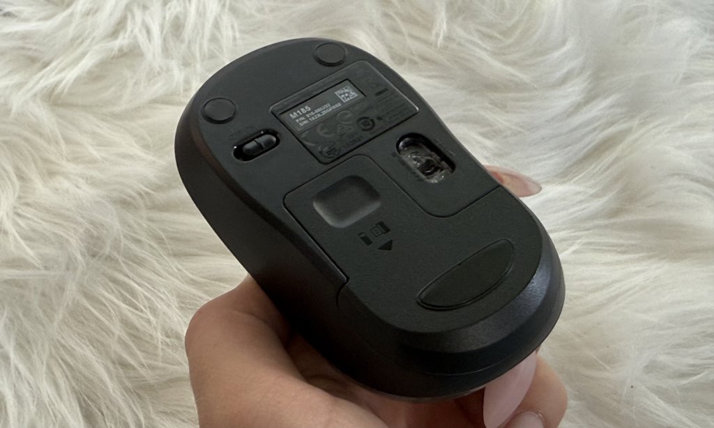 Pagriežot ierīci otrādi, var atrast vietu vienai AAA baterijai. Turpat varēsiet atrast arī ieslēgšanas un izslēgšanas pogu. Atverot baterijas nodalījumu, atradīsiet vietu, kur novietot USB uztvērēju, ar kuru iespējams savienot kā datorpeli, tā tastatūru – praktisks risinājums katram, kura darbavide mēdz būt mainīga.