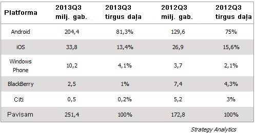 Savukārt VIP personas un hipsteri mazāk sākuši pirkt Apple izstrādājumus, un to tirgus daļa samazinājusies par vairāk nekā 2 procentpunktiem. BlackBerry ar kritumu no 4% līdz 1% vispār zaudējis vērā ņemama tirgus spēlētāja statusu. Toties strauju izaugsmi – 2 reizes gada laikā – uzrāda Microsoft Windows Phone platforma. Š obrīd tai pieder vien 4,1% tirgus, bet pie šādiem tempiem iOS izkonkurēšana ir tikai laika jautājums.