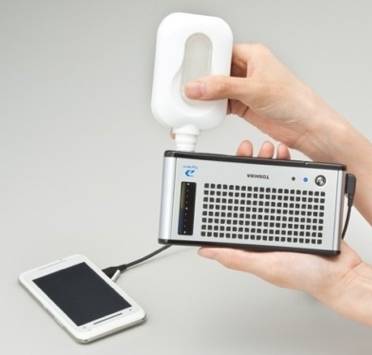 Degvielas elementi jau tiek ražoti kopš 2009. gada. Piemēram, Toshiba Dynario PF60A000001 (attēlā) vizuāli ir neliela kastīte, kas uzpildāma ar metilspirtu, un paredzēta portatīvās elektronikas uzlādēšanai caur USB pieslēgvietu. Š āds prieciņš šobrīd maksā 205 Ls plus rezerves kārtridži virs 20 Ls/gab.