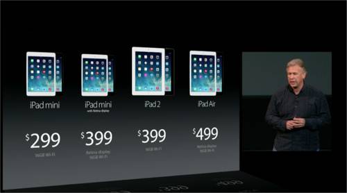 Prezentēja arī jaunu iPad mini ar Retina displeju – tam noteikta cena 399 USD. Pārdošanā saglabās arī vecos iPad mini un klasiskos iPad 2: tos tirgos par 299 un 399 USD attiecīgi.