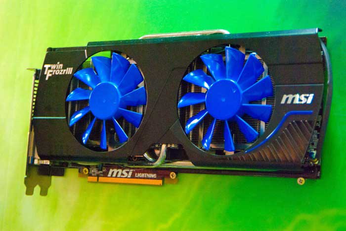 Savukārt MSI ražotā GeForce GTX580 Lightning Extreme Edition tikusi pie ziliem ventilatoriem un 3 GB VRAM.