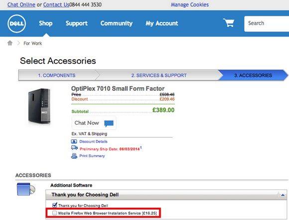 Datoru ražotājs Dell pie savas produkcijas pārdošanas piedāvā klientiem “īpašu” papildpakalpojumu: uzinstalēt Mozilla Firefox. Š is prieciņš Lielbritānijā maksā 16,25 GBP (20 €). Protams, pārlūka instalēšana nav nekāda raķešzinātne, un paveicama ar pāris peles klikšķiem. Acīmredzot dažiem prāta spējas pat tam nepietiek, un viņi uztic šo procesu citiem. Bet ja ir auni, tad tie ir jācērp.