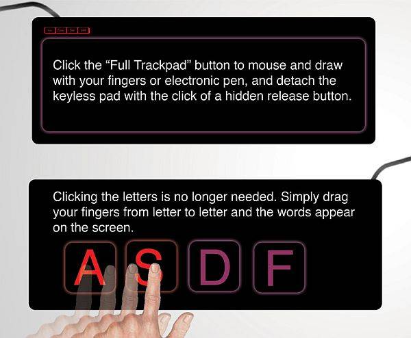 Koncepta galvenā priekšrocība ir tā, ka katrs lietotājs var konfigurēt pogas, to lielumu, izkārtojumu tā, kā pašam ir ērtāk. Tāpat var mainīt pogu krāsu, pievienot jaunas pogas tik, cik vajadzīgs, kā arī aizvākt nevajadzīgās. Pielāgotos izkārtojumus var saglabāt un atvērt attiecīgās programmās. Piemēram, kalkulatoram var būt tikai lielas ciparu pogas. Arī dažādu valodu specifiskās klaviatūras varēs pārslēgt lidojumā