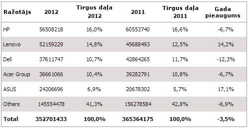 Arī ražotāju tirgus daļas ir izmainījušās. Uz vispārējā krituma fona pratuši izcelties Lenovo un ASUS, kuriem izdevies pārdot vairāk nekā pirms gada.