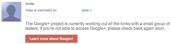Lai tiktu pie Google+ lietotāja profila, jāsaņem šāds ielūgums