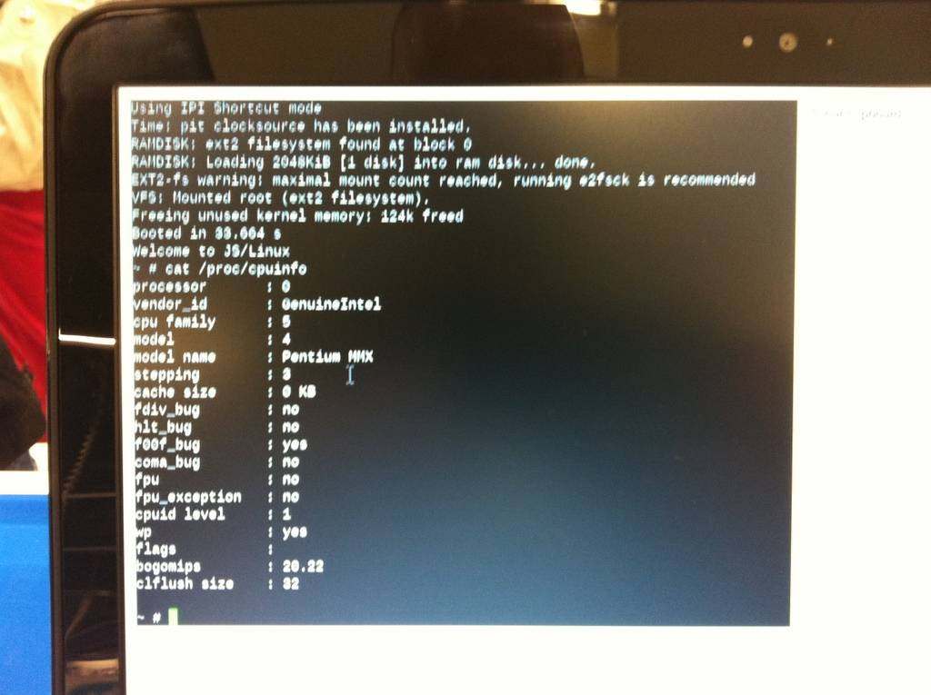 Veiktspējas novērtēšanai tika pamēģināts ielādēt virtuālo Javascript Linux . Tas prasīja veselas 33 sekundes! [Notepad piezīme: man uz galddatora tas prasīja 9 s uz Chrome 16.0.891.0 dev-m un 4,7 s uz Firefox 7.0.1]