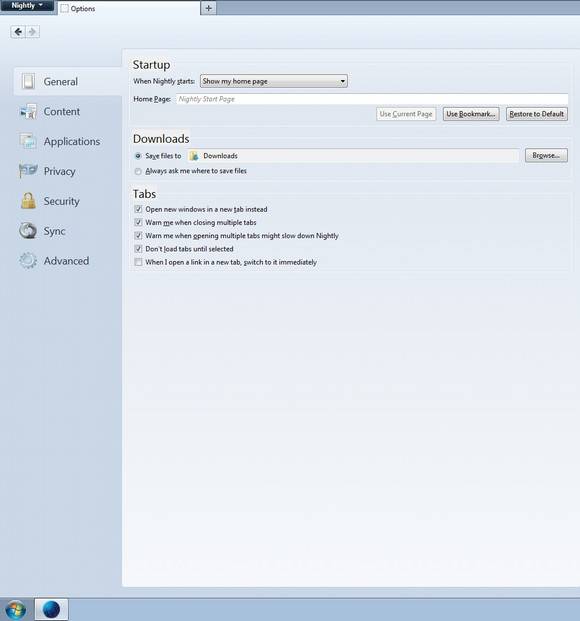 Veins labprāt visiem arī parādītu rezultātus, bet mainīts tiek ne tikai Firefox dizains, bet arī kods. Š ī iemesla dēļ nevar tā vienkārši ieklikšķināt about:config un ieslēgt jauno grafiku. Tomēr daļu darba mums parāda: lai apskatītu, nepieciešams uzinstalēt Firefox Nightlyabout:preferences