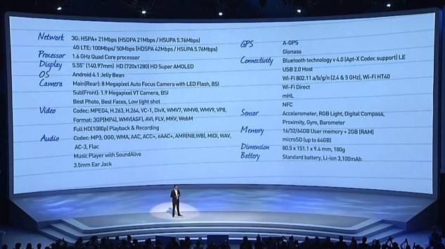 Galaxy Note 2 kļuvis vēl lielāks un jaudīgāks – tā Super AMOLED displejs nu jau sasniedz 5,55 collas; izšķirtspēja gan nav mainījusies – 1280×720. Ierīci darbina 4-kodolu 1,6 GHz procesors. Kameras – 8 un 1,9 MPix.