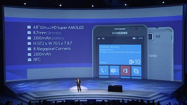 Viedtālrunis ATIV S ar Windows Phone 8 arī dižojas ar lielu Super AMOLED ekrānu – 4,8″: