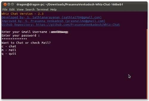 Tātad divi brāļi no Indijas ir radījuši programmu Whiz-Chat, kas ļauj tērzēt ar saviem Gmail draugiem “pa taisnoâ€, izmantojot neko citu kā tikai Linux termināli. Kā saka autori, tad tā ir ļoti laba alternatīva lietotājiem, kuriem ir lēns interneta pieslēgums, vai arī viņi negrib pamest termināli un komandrindas sniegtās neierobežotās iespējas.