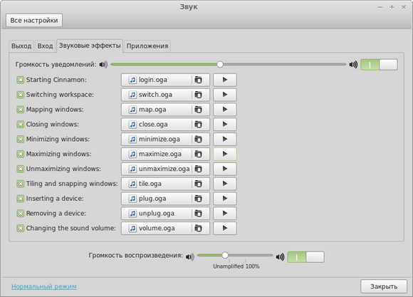 Papildus sistēmas skaņas ietver logu atvēršanu/aizvēršanu, darbvirsmu pārslēgšanu utml. Visu var ērti konfigurēt vai atslēgt. Skaļuma līmenis nav atkarīgs no citiem skaņas iestatījumiem.