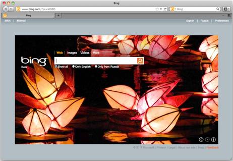 Kā ziņo izstrādātāji, tādu pat efektu varot panākt ar papildinājuma Bing Search instalāciju. Š is jaunievedums parādījies sakarā ar Mozilla un Microsoft sadarbības līgumu , kas parakstīts 2010. gadā. Laikam tam ir liela nozīme, jo pat parādījusies jauna Firefox mājaslapa