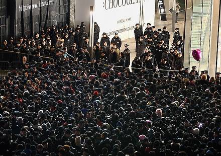Apple uzskatīja, ka milzīgais pūlis iebrūkot var izdemolēt veikalu, tāpēc kāds no darbiniekiem megafonā paziņoja, ka iPhone 4S pārdošana šodien nenotiks. Pēc tam uz veikalu sākušas lidot olas un klaigāti pret veikala administrāciju vērsti saukļi. Kārtības ieviešanai ieradās policija un izklīdināja fanātu pūli. Tā kā cilvēki bija jau ilgi saluši pie -9 grādiem, tas nekādu pūļu neprasīja.