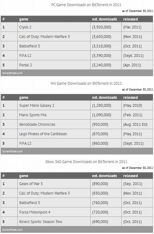Crysis 2CoD: Modern Warfare 3Battlefield 3FIFA 12