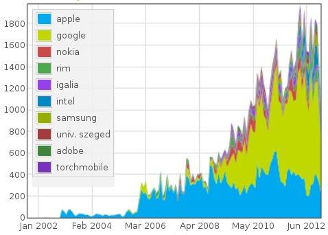Ja 2007. gadā tikai Apple nodarbojās ar WebKit, tad šobrīd jau 20 kompānijas raksta kodu, un “minoritāšu” daļa jau sasniegusi 25% ar tendenci augt. Arī autoru-programmētāju skaits jau sasniedzis 1600.