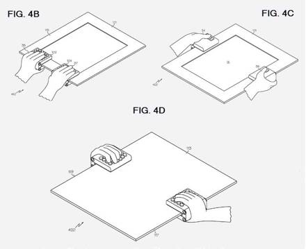 Ievadei paredzēti divi atverami klipši, kas cieši aptvers planšetdatoru no abām pusēm. Aiz šiem klipšiem varēs ierīci turēt, un katrs saturēs pusi no QWERTY klaviatūras. Pogas, kurām nepietiks vietas priekšā, iespējams izvietot aizmugurē (kā Space vai Ctrl). Klipšu iekšējo virsmu paredzēts izgatavot gumijotu, kas neslīdētu. Rezultātā darbs ar šādu klaviatūru atgādinās basu spēlēšanu uz akordeona, ko parasti izpilda ar tausti.