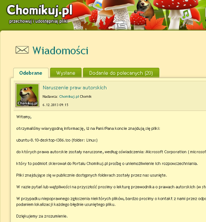 Avots pamatoti joko par Microsoft jauno politiku cīņā pret konkurentiem: pamatojoties uz autortiesībām, izskaust Linux, lai visi būtu spiesti pirkt Windows. Tomēr visdrīzāk šeit bija vainīgs tīkla monitoringa robots: ubuntu-8.10-desktop-i386.iso noturēts par Windows 8.1 pirātisku kopiju, jo palien zem meklēšanas maskas «*8.1*».