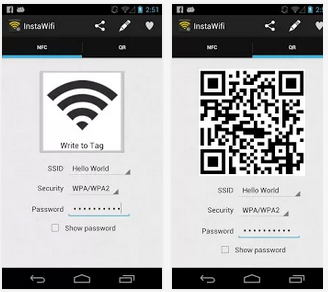 Diez gan bieži ir gadījies, ka pie manis ciemos atnāk kāds draugs un pašsaprotami, ka prasa piekļuvi Wi-Fi tīklam. Tā, nu, katru reizi man jādiktē vai ciemiņa iekārtā pašam jāievada Wi-Fi parole. Ir risinājums – InstaWifi programma, kura nosūta tavu Wi-FI piekļuvi ciemiņam, izmantojot NFC vai QR koda tehnoloģiju. Ja abu cilvēku iekārtas atbalsta NFC, tad to piekļuvi var nodot otram vienkārši saskaroties ar iekārtām. Bet, ja NFC nav, tad var arī nosūtīt QR attēlu, un notiks automātiska savienošanās ar tavu bezvada internetu.