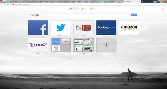 Opera 15 kļuvis vieglāks par iepriekšējiem laidieniem – to jūt gan dizainiski, gan darbībā. Jaunas ir trīs cilnes augšējā daļā – Speed Dial, Stash un Discover. No tām mēs pazīstam tikai Speed Dial