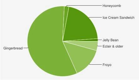 Attēlā: visu Android ierīču sadalījums pēc OS versijām