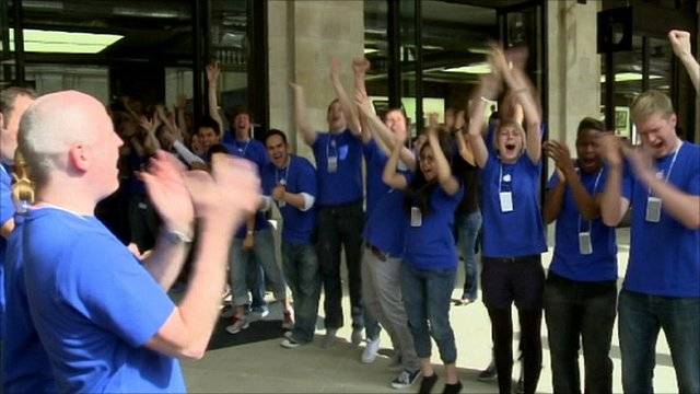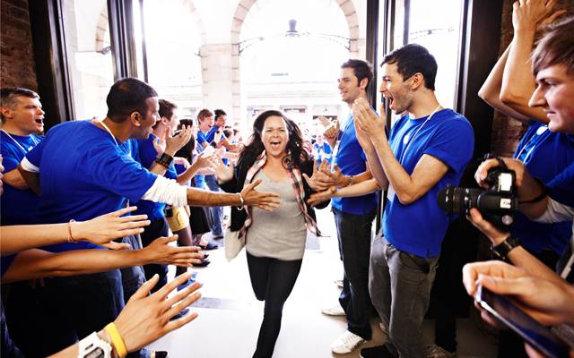 Tieši tāda pat aina risinājās pusjūdzi attālajā Rīdžentstrītas Apple veikalā. Nedeva nekādas dāvanas (ja neskaita nedaudzus T-kreklus), nebija arī nekādu akciju.