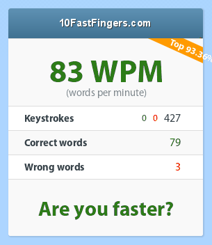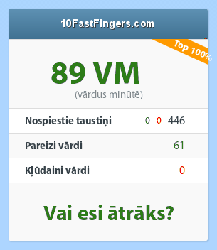Trešais punkts – valodas īpatnības. Ok, angļu ir dominējošā, bet es kā letiņš angļu testā ātri uzrāvu 80 wpm, bet latviešu 72 pārsist nevarēju. Jo pirmajā bija tādi vārdi kā if, and utml., bet otrajā ceturtdiena un dzelzceļš.
