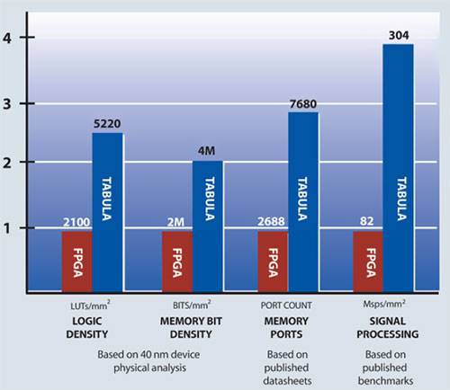 Kompānijas Tabula ABAX mikroshēmu līnijā ievērojamā mērā izdevies novērst klasiskos trūkumus. ABAX čipos signālu izlaiž caur secīgiem 8 blokiem, no kuriem katrā ir izveidota sava shēma. Ar šādu pieeju izdevies sasniegt 1,6 GHz taktsfrekvenci. Lai saprastu šo čipu revolucionāro ideju, atkal pievērsīsimies primitīvismam: iedomāsimies, ka vienu mikrosekundi mūsu mikroshēma izpilda CPU pienākumus, nākamo mikrosekundi tā top pārprogrammēta par videokarti, nākamo – par tīkla karti utt. Laikā, kamēr notiek pārprogrammēšana, datus saglabā kešatmiņā. Mājaslapā ir video