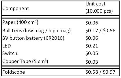 Mikroskops ar nosaukumu “Foldscope 2.1” samontēts no parasta kartona detaļām. Ä€rkārtīgi vienkāršā ierīce vēl satur litija bateriju CR2016 (lieto tālvadības pultīs, atslēgu piekariņos – lukturīšos utml.), baltas gaismas LED, slēdzi, vara lentas gabaliņu un lodveida lēcu. Lai ierīci samontētu, vajag 10-20 minūtes laika. Baterijas pietiek 50 stundu darbam. Nekas nekaitēs arī tad, ja šis mikroskops nokritīs, un tam virsū uzkāps zābaks.