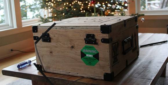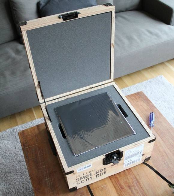 Ko darīs ar Steam Machine? Protams, ka šaus! Tāpēc arī spēļu studija Valve nolēmusi būt asprātīga un 300 izraudzītajiem testētājiem konsoles piegādāja masīvās kastēs, kādās parasti pārvadā ieročus – ar visiem apkaltajiem stūriem. Un nekāda tur imitācija – īsts saplāksnis un īsts metāls.
