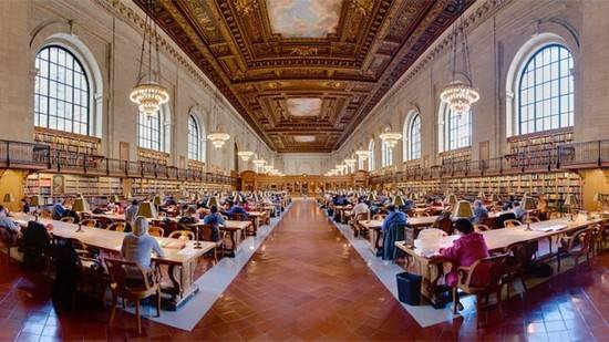 Attēlā: Š…ujorkas publiskās bibliotēkas lasītava