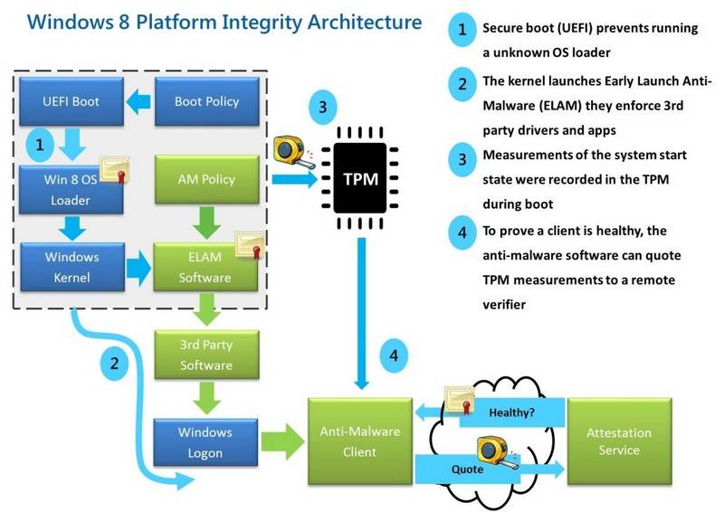 “Sinofskis apgalvo, ka viņa vainas tur neesot – drošas ielādes sertifikācijas mehānisms esot UEFI protokola sastāvdaļa un tam nav sakara ar Windows 8.”