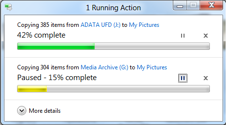 Visas kopēšanas operācijas tagad būs apvienotas vienā logā. Varēs nopauzēt kopēšanas plūsmas, ja jākontrolē procesa ātrums, kā arī atvērt avota un mērķa mapes tieši no kopēšanas loga.