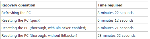 Prognozējamais katras operācijas veikšanas laiks attēlots tabulā. Redzam, ka pilnīgai PC atgriešanai sākumstāvoklī vidēji vajadzēs ap 24 minūtēm.