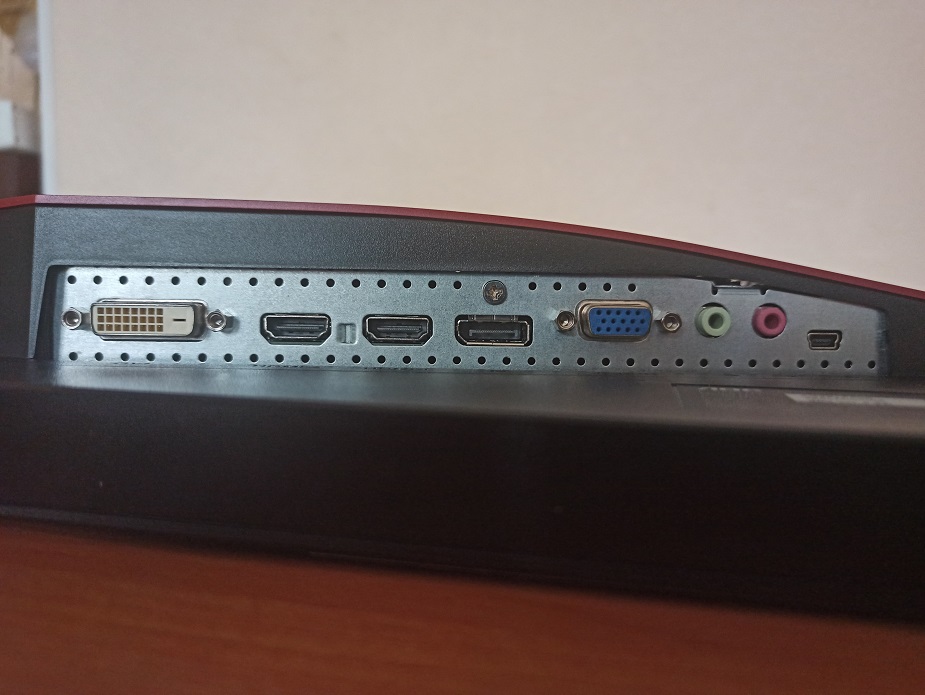 Monitoram ir ļoti plašs pieslēgvietu portu klāsts, tam vēl pat ir pieejami VGA un DVI porti. Papildus vēl ir viens HDMI 1.4, viens HDMI 2.0, divi DisplayPort 1.2, četri USB 3.0 un austiņu izejas (3,5 mm) ports. Lai nodrošinātu maksimālo atsvaidzes intensitāti, nāksies monitoru savienot ar Display portu. VGA/ DVI un HDMI porti spēj nodrošināt līdz 144Hz ekrāna atsvaidzi.