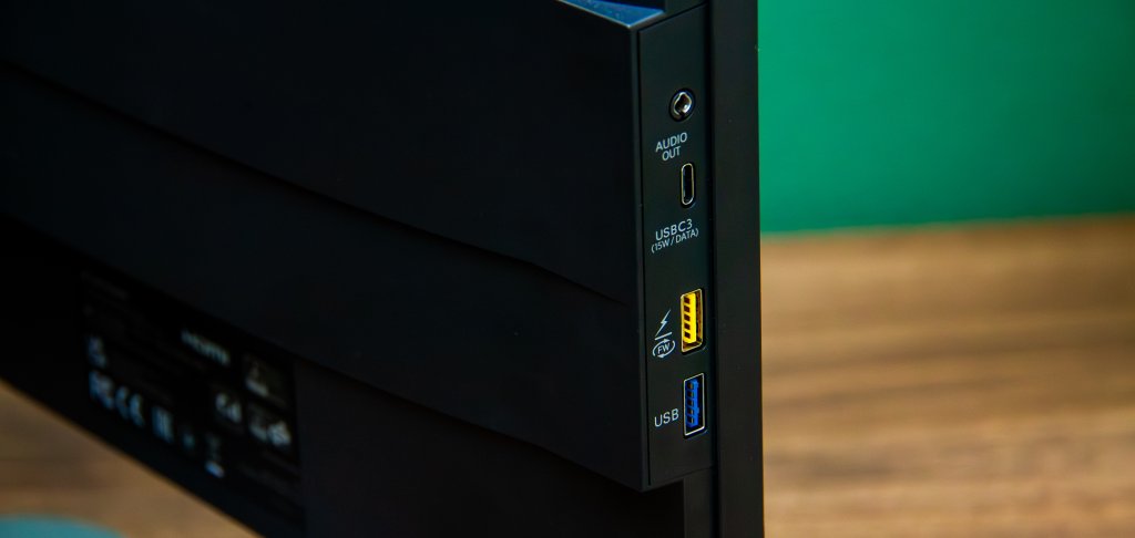 Monitora kreisajā sānā izvietotas 4 vairumam lietotāju ikdienā bieži nepieciešamas pieslēgvietas – audio izeja, 1x USB-c un 2x USB-A. USB-C (15W) un viena USB-A pieslēgvieta atbalsta uzlādi, kas ļaus pieslēgt un uzlādēt kādu mazāku iekārtu, piemēram, telefonu, tastatūru vai datorpeli.