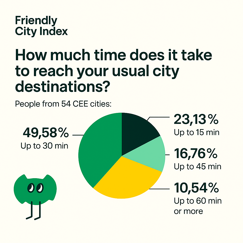 *Draudzīgo pilsētu indekss un 15 minūšu pilsētu reitings ir pirmā šāda veida iniciatīva – starptautiska datu bāze, kas salīdzina CEE reģiona pilsētas no cilvēkcentrētas perspektīvas: ikdienas pārvietošanās laika, piekļuves zaļajām zonām, veloinfrastruktūras, koplietošanas mobilitātes un citu rādītāju skatījumā. Indeksu izstrādāja “Bolt”, sadarbojoties ar neatkarīgiem ekspertiem un akadēmiskajām institūcijām, lai iedzīvotāji varētu novērtēt savu pilsētu un salīdzināt to ar citiem reģiona centriem.