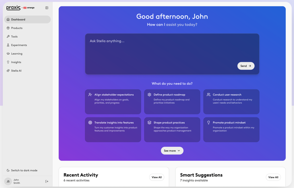 Praxis un Stella AI palīdz uzlabot skaidrību, efektivitāti un rezultātus produkta izstrādē un profesionālajā attīstībā, piedāvājot trīs būtiskus jauninājumus: