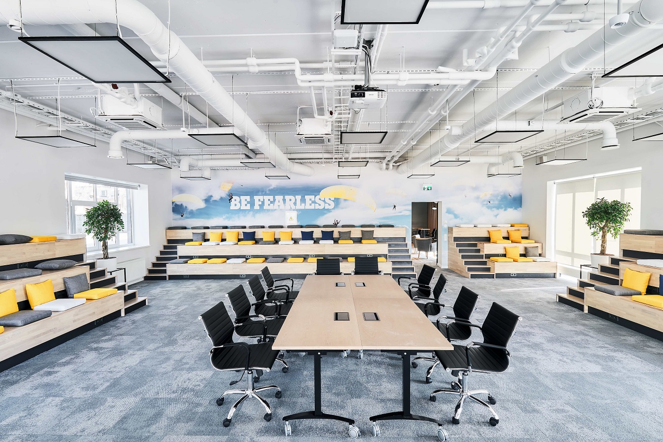 Ņemot vērā darba specifiku uzņēmumā, jaunajā birojā ir daudz vairāk nelielu sapulču telpu, jo, uzsākot darbu pie jaunā biroja koncepcijas, tika noskaidrots, ka 77% sanāksmju norisinās tikai divu līdz četru cilvēku lokā. Ir izveidotas arī speciālas telefona būdiņas, kurās var netraucēti sarunāties pa tālruni, jo tām ir nodrošināta skaņas izolācija.